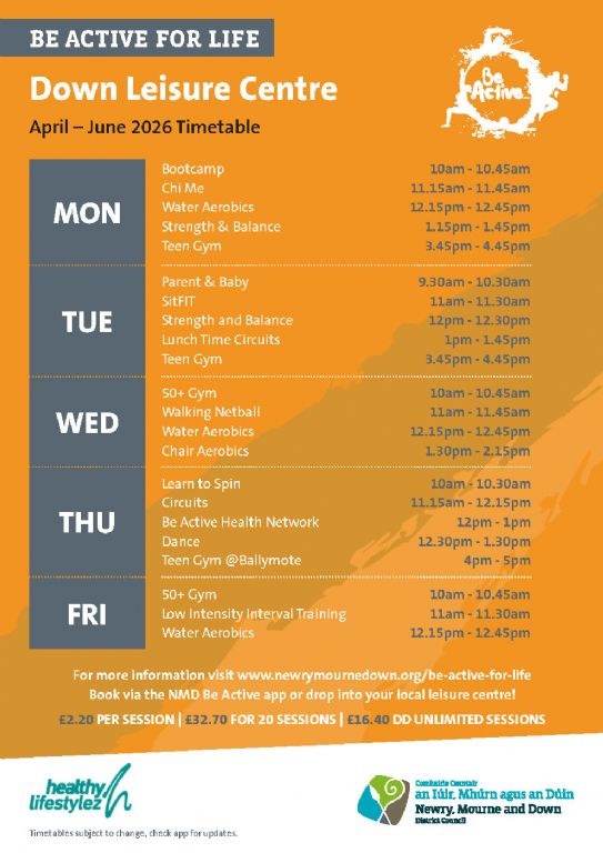 Down Leisure Centre Specific Classes: