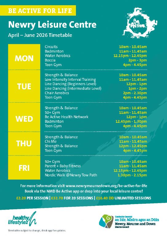 Be Active for Life is an initiative created by Newry, Mourne and Down District Council to encourage people of all ages and abilities to get either get involved in physical activity or increase what they are currently doing.