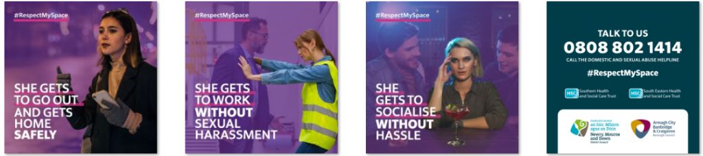 To support this work the Council's Safeguarding team and Women’s Working Group have partnered with Armagh City Banbridge and Craigavon Borough Council, Southern Health and Social Care Trust and South Eastern Health and Social Care Trust to promote the new #RespectMySpace campaign across our social media channels.